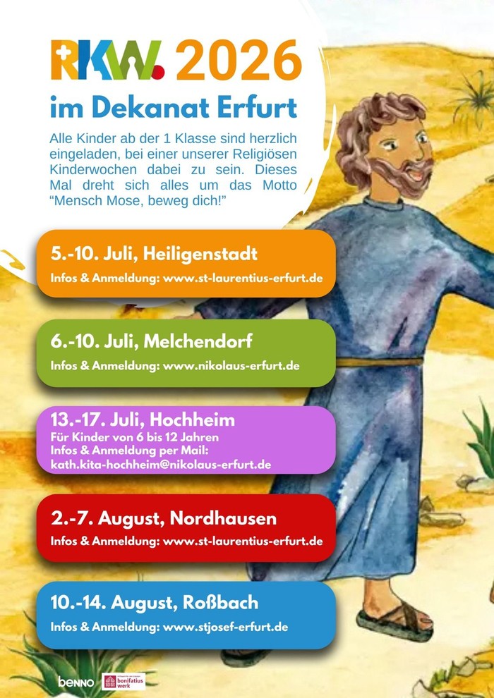 RKW in Hochheim: 13.-17. Juli 26 Kita St.Bonifatius, Hochheim für Kinder von 6 bis 12 Jahre Anmeldung per Mail: kath.kita-hochheim@nikolaus-erfurt.de