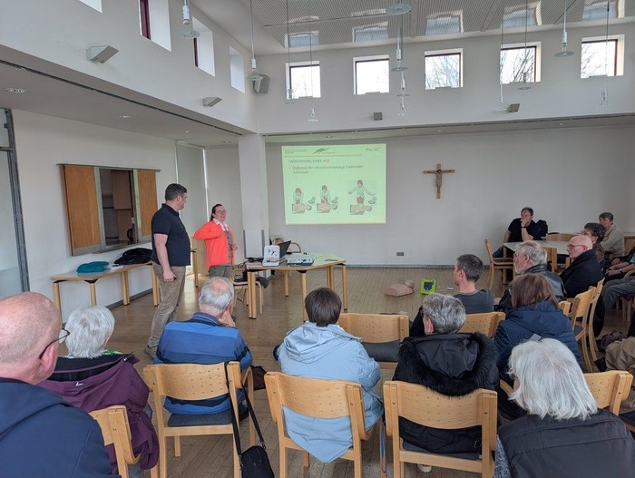 Anfang März wurde der Defibrillator offiziell in Betrieb genommen. Im Rahmen einer Informationsveranstaltung wurden Interessierten die Theorie sowie die Praxis für den Ernstfall vermittelt. Dabei wurde betont, wie wichtig es ist, unverzüglich mit den Ersthilfemaßnahmen zu beginnen – und wie kinderleicht der AED zu bedienen ist.
