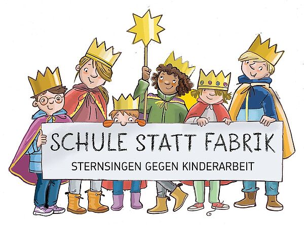 Die Aktion Dreikönigssingen 2026 steht unter dem Motto „Schule statt Fabrik – Sternsingen gegen Kinderarbeit“.